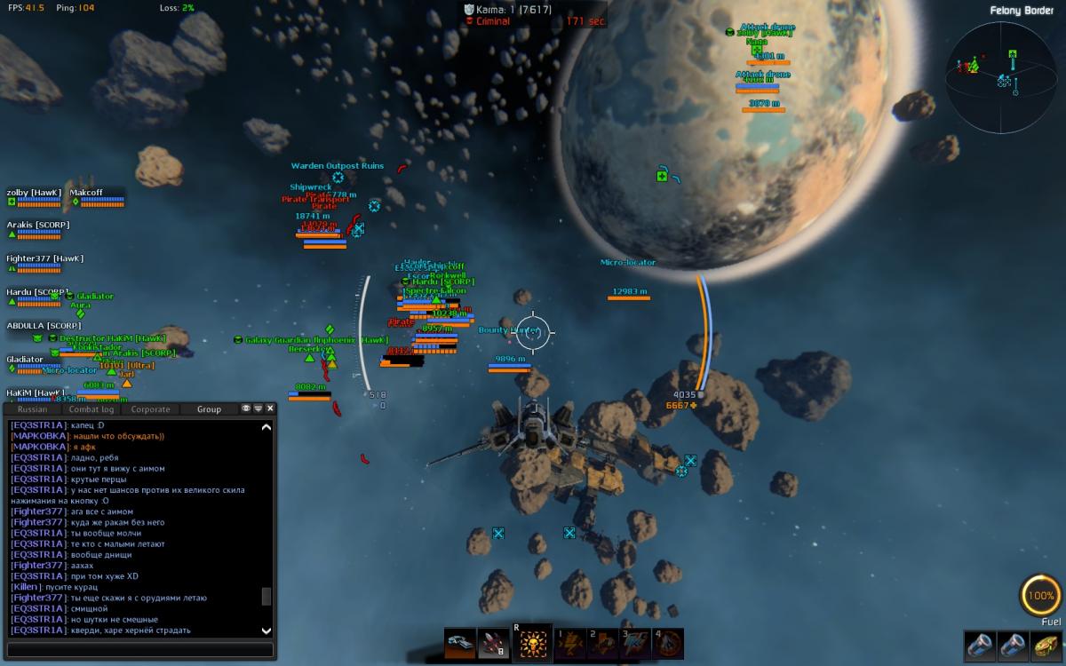 Далее мы с напарником полетели в Бартерную Зону, где и начали очищать сектор. Хочется отметить пилота Screper[sCORP]. Он был настолько упорот отважен, что раз за разом уничтожался нами.
