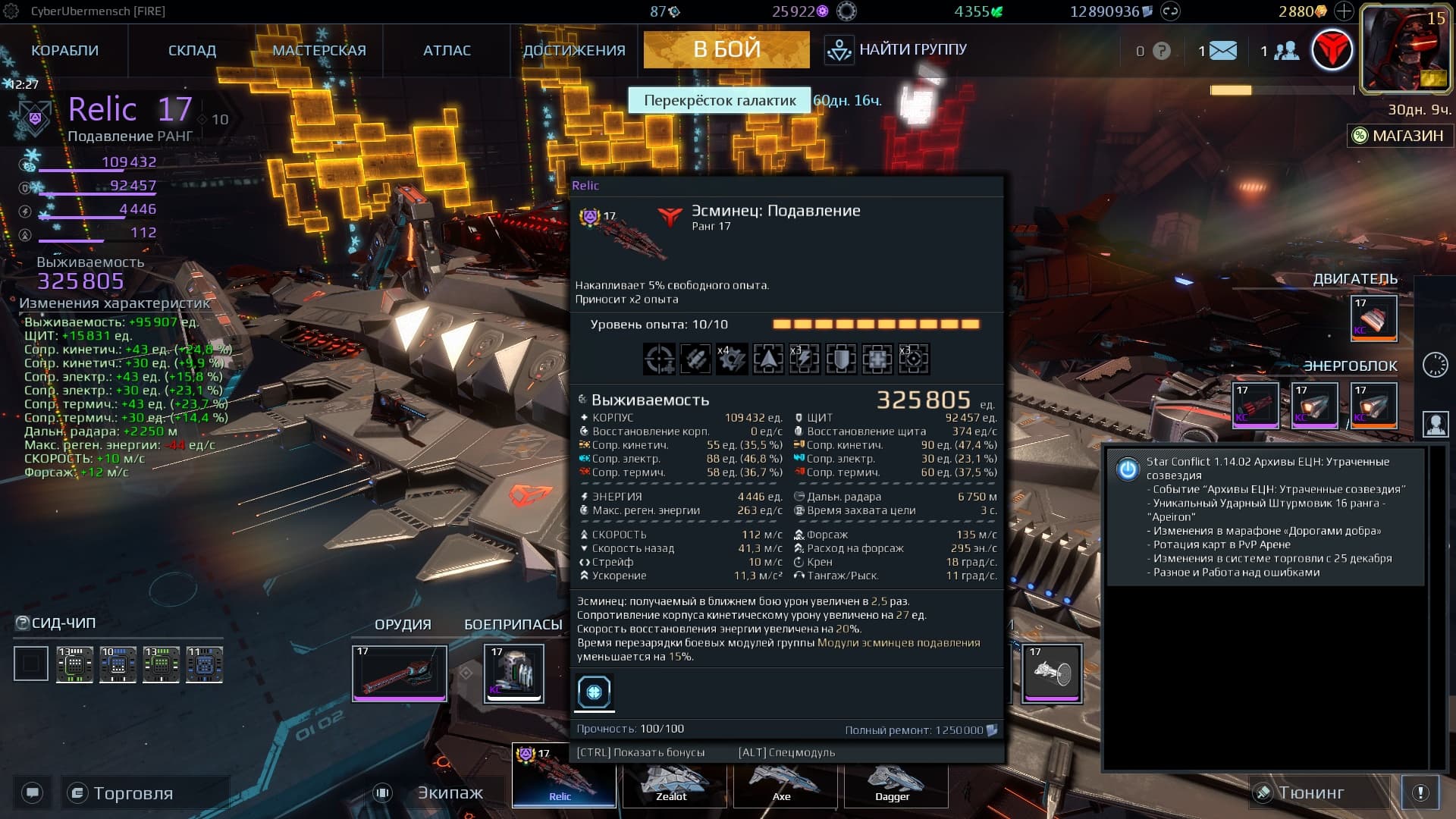 Перехваты сейчас спиливают и Ze’Ta и Emperor и вообще любой эсм на безальтернативной основе (а если не спиливают, то превращают в камень без модулей на 120 секунд). Если собираться в танка, то, теоретически, можно жить подольше, но не сильно - 120к урона от основных орудий, как-никак. Никакой скил и никакой “умелый игрок” не уберут и не помогут избежать тройного урона и распила всех модулей за одну секунду, этому просто невозможно противостоять - у тебя нет мобильности, нет модулей на ближнюю оборону, нет модулей на быстрый отхил, а команда, которая, в теории, тебя спасёт, тоже вряд-ли среагирует на невидимый дивер противника за 2 секунды - а эсм уже спилили.