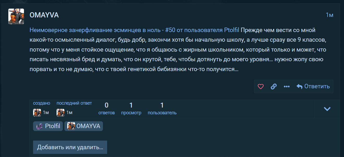 так у меня нормально всё, я без читов бои в этой игре долблю куда и как захочу, и не ракам на брёвнах, попадающимся в расставленную специально для ограниченных ловушку с крестами писать мне “И конечно я знаю, что ты балуешься бустами от разрабов и софтом, но не могу это доказать”, надеясь получить какой-то ответ на свой поток площадной брани - всего, на что хватило развития.