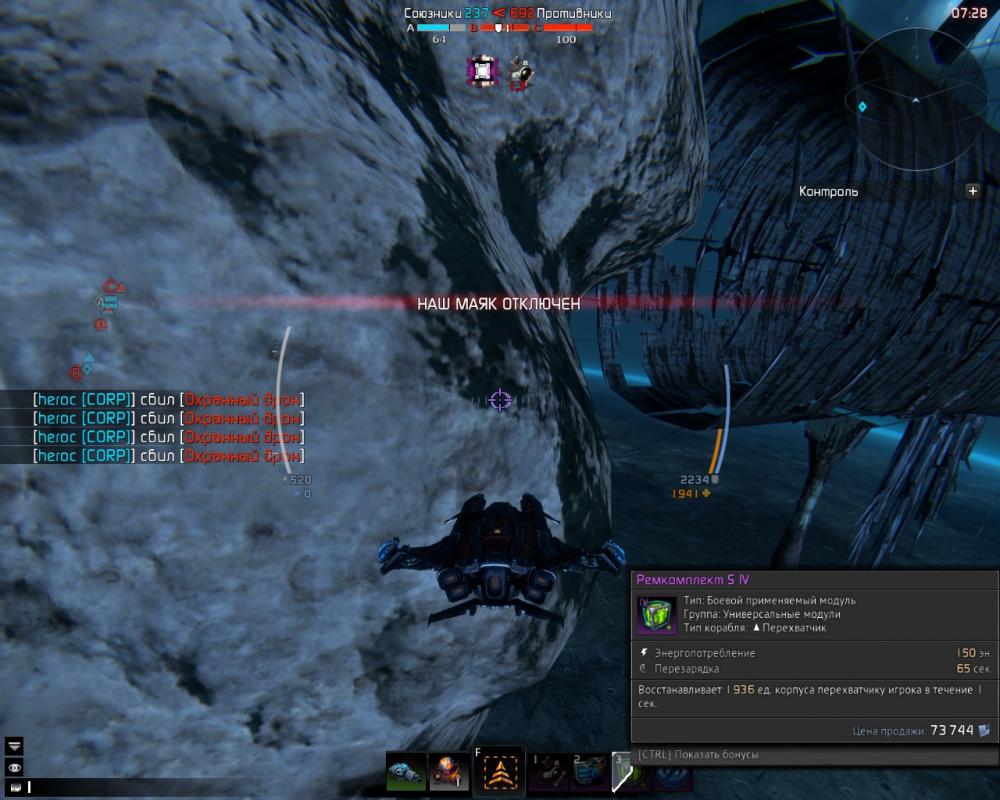 Боты-шпионы уменьшают количество получаемых очков корпуса от Ремкомплекта S IV.