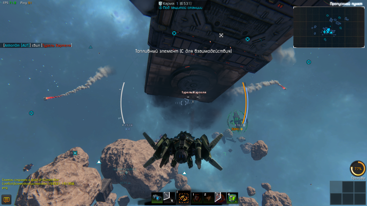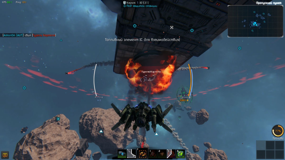Баг наблюдал только в открытом космосе (так как больше нигде пока не играл). При уничтожении турели, еще секунды две весит название уничтоженной турели.