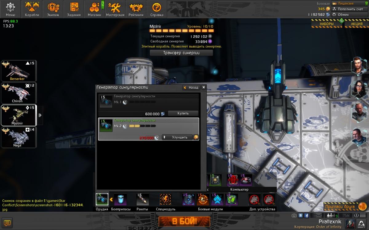 Уважаемые разработчики, можно ли как то исправить ту ситуацию которая на данный момент вызывает у меня немало вопросов, на счет ранговой системы модулей и оружия, в частности меня беспокоят 14 ранги. Все знаю что модули и оружия устанавливать на 3 ранга выше и 3 ранга ниже то есть если к примеру ранг корабля 9 то на него можно устанавливать модули и вооружение вплоть до 13 ранга и соответственно если корабль 15 ранга на него можно устанавливать модули и вооружение 10 ранга, НО, у меня на складе имеются несколько видов оружия и модулей которые относятся к 14 рангу и их к сожалению нельзя установить на ранги выше , то есть к примеру если модуль и оружие 14 ранга, то его можно установить на корабли рангами ни, но нельзя установить на корабли рангами выше… высылаю картинки, примером служит генератор сингулярности 14 ранга.