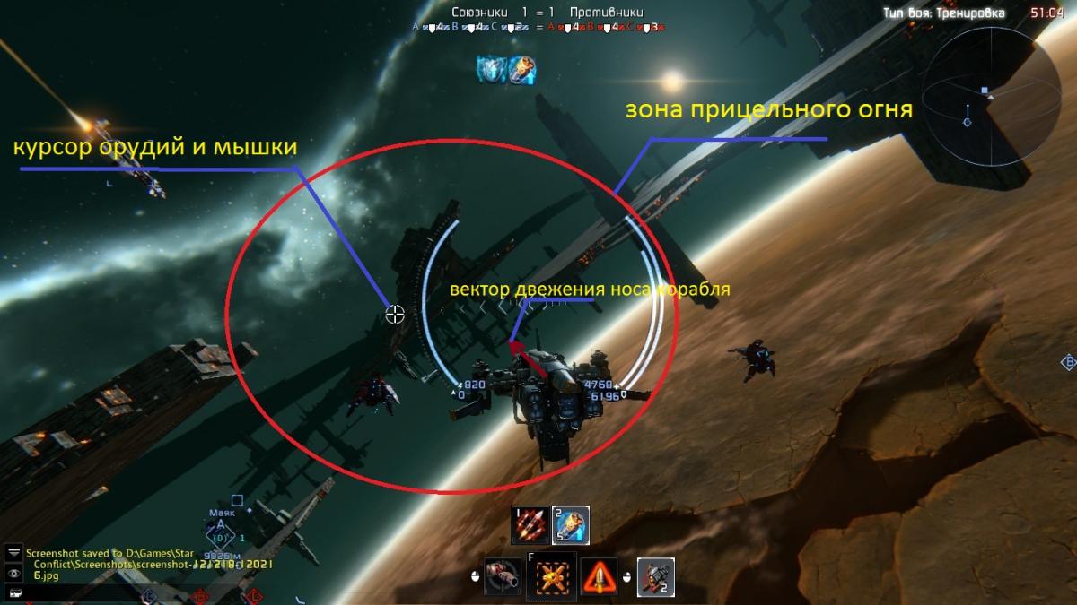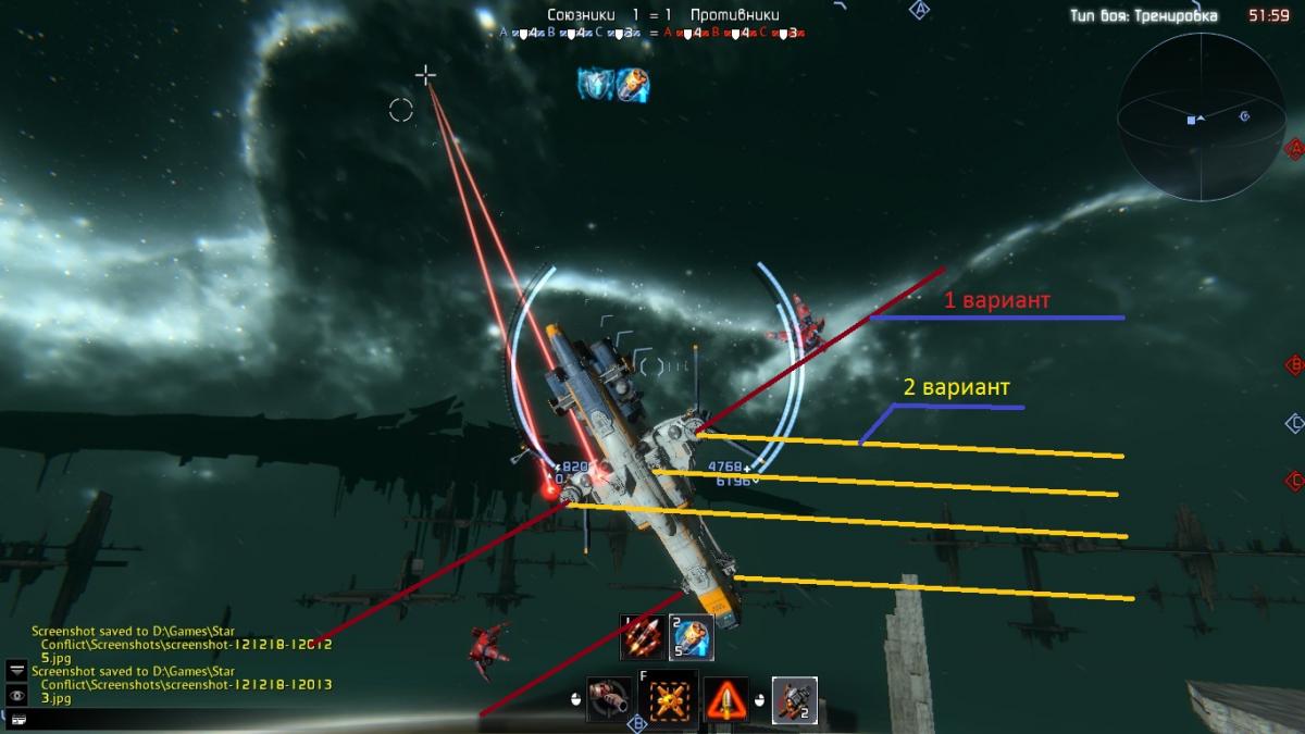 Мне не понятно зачем сейчас курсовому оружию стрелять назад и всего двумя турелями, когда могут стрелять все 6(видно на скриншоте) если попасть всё равно не получится. Чтобы сделать данный скриншот мне пришлось заниматься мазохизмом 30 секунд, пытаясь развернуть фрегат, в бою меня уже давно убили бы.