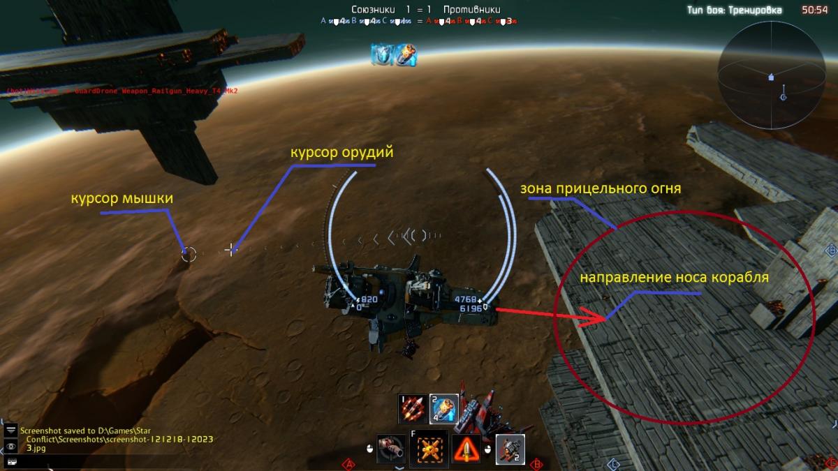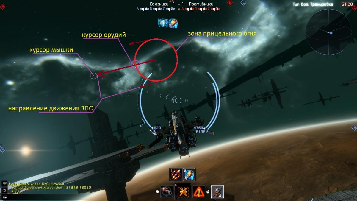 Балансировать разные виды курсового оружия можно изменяя радиус Зоны Прицельного Огня и угол поворота турелей.